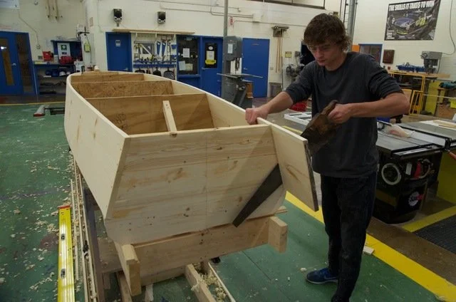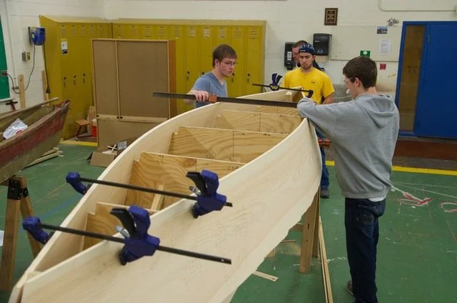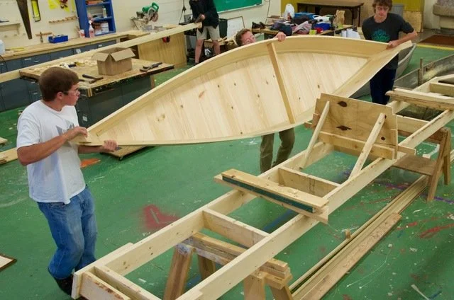 To date my high school students have researched and drawn seven traditional boats and built replicas of six. Their work represents the first comprehensive documentation of Lake Champlain small boats and we look forward to continuing this work. This research is grant-funded and we have relied on the generous support from a variety of sources, including the Lake Champlain Basin Program in partnership with the New England Interstate Water Pollution Control Commission; The National Park Service and the Champlain Valley National Heritage Partnership; the Patrick Foundation; the Bay and Paul Foundations; the Regatta for Lake Champlain; and Mr. James Bullard. Additional in-kind support has been provided by the Henry Sheldon Museum and the Patricia A. Hannaford Career Center. Oral history training was provided by the Vermont Folklife Center. Lathrop’s Maple Supply of Bristol, Vermont and R.K. Miles, Inc. of Middlebury, Vermont generously offered discounted materials for our boatbuilding.
