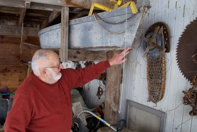 Until the 1980s muskrat trapping was common in the region. In the Champlain Valley dairy farmers trapped the creeks and waterways that abutted their farms. For many farmers the income from pelts was a significant source of revenue, and most trappers built their own boats. These craft look simple, and reflect the basic carpentry skills of their builders, men who had to be jack-of-all-trades in running dairy farms, but it would be a mistake to describe the boats as crude. Their double-ended shape (locally called “two pointers”), were perfectly designed for running through the cattail-choked waters. The boats were also sheathed in tin since trapping season took place in late fall and early spring when ice was on the water. Trapping boats were propelled by poling them standing up. In short, these boats are a perfect marriage of form and function, testimony to their owners’ understanding of the environment and their needs.