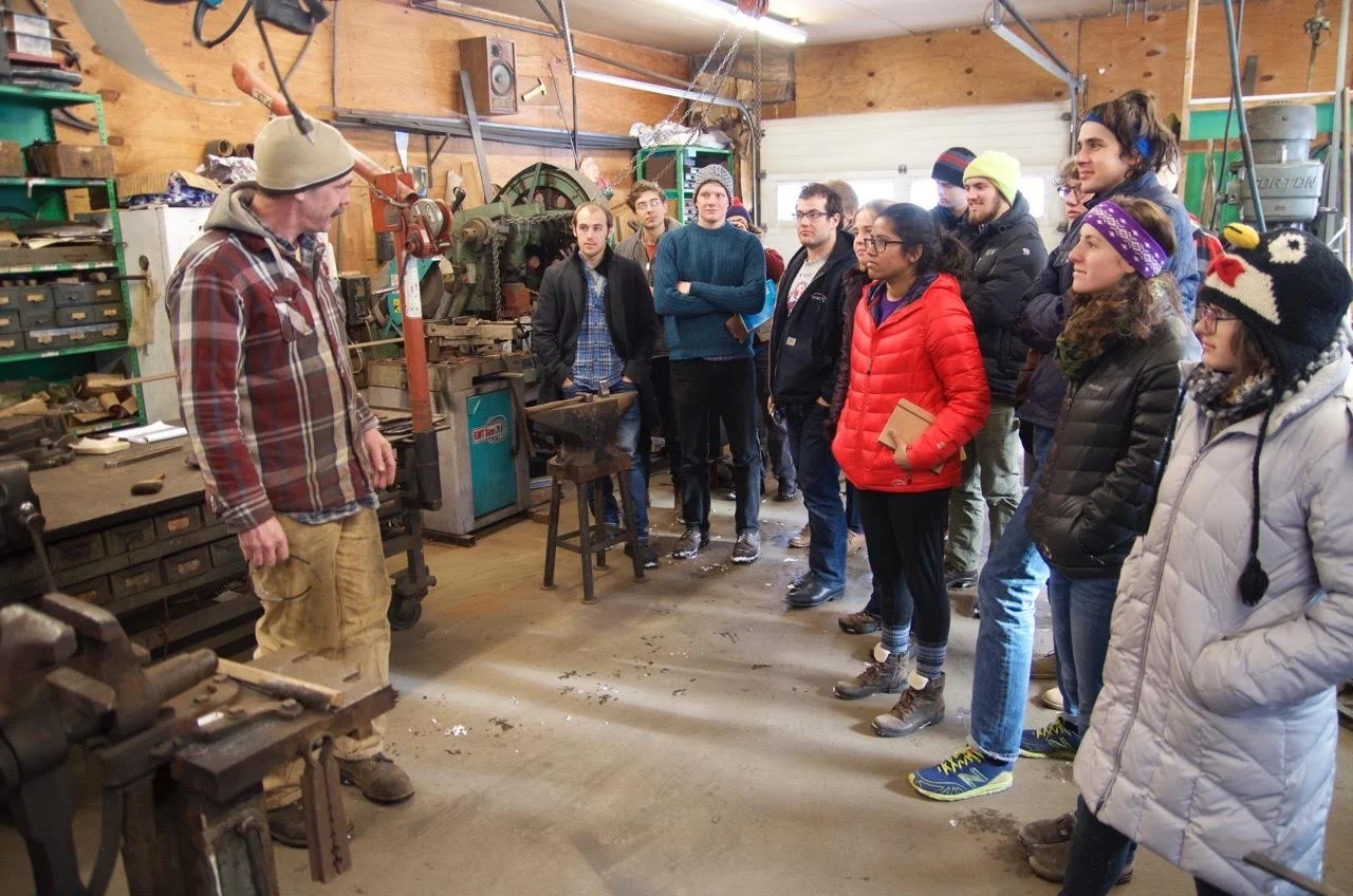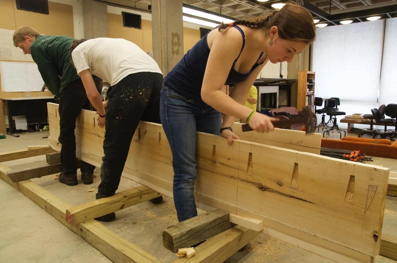 In 2015 I taught my second Winter Term course at Middlebury College, my inaugural class entitled "Building the Japanese Boat." In this course I led fifteen students in the construction of two river boats: a 22-foot boat from the Kesen River in Iwate Prefecture and a 16-foot ayubune from the Hozu River near Kyoto. This course introduces students to the tenets and principles of apprentice learning through readings, lectures, and discussions, by building a traditional Japanese boat. The course meets four days a week for one month. I do not require students to have any prior woodworking experience. Students keep a journal which I periodically review and write a final paper for the class. I grade them on their comportment as apprentices in the workshop and the quality of their final papers.